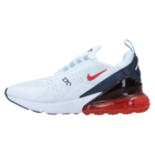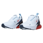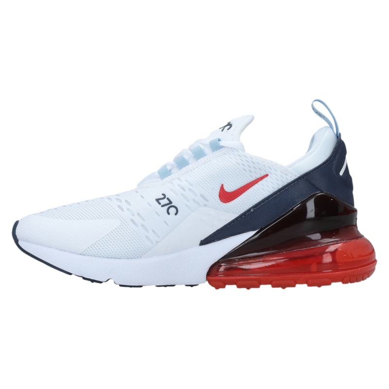 Nike Air Max 270 su sportske muške patike. Ove patike su sasvim bele boje, sa svetlim detaljima i prepoznatljivim logom Nike sa bočne strane. Nike Air Max 270 imaju pertle, ultra su udobne, pružaju podršku i udobnost stopalu. Ove patike su napravljene od višeslojnog tekstilnog gornjeg dela bez šivenja, jezičak za povlačenje pete i gumeni potplat. Mogu se nositi svaki dan uz trenerku, farmerke i Nike majicu.