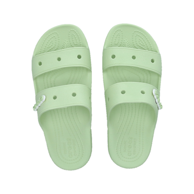 Ženske papuče Crocs Classic Sandal u svetlo zelenoj boji su pravo osveženje u vedrim i sunčanim danima. Ženske papuče Crocs imaju dve trake koje daju stopalu osećaj sigurnosti i udobnosti. Crocs Classic ima po sedam rupa na svakoj papuči i to vam omogućava da ukrasite svoj model sa Jibbitz privescima. Ženske papuče imaju Crocs logotip na bočnoj strani. Neverovatno lagane, lako se čiste i brzo suše. Penaste podloge za vrhunsku udobnost.